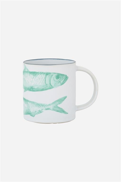 Keramička šalica sa motivom ribe.